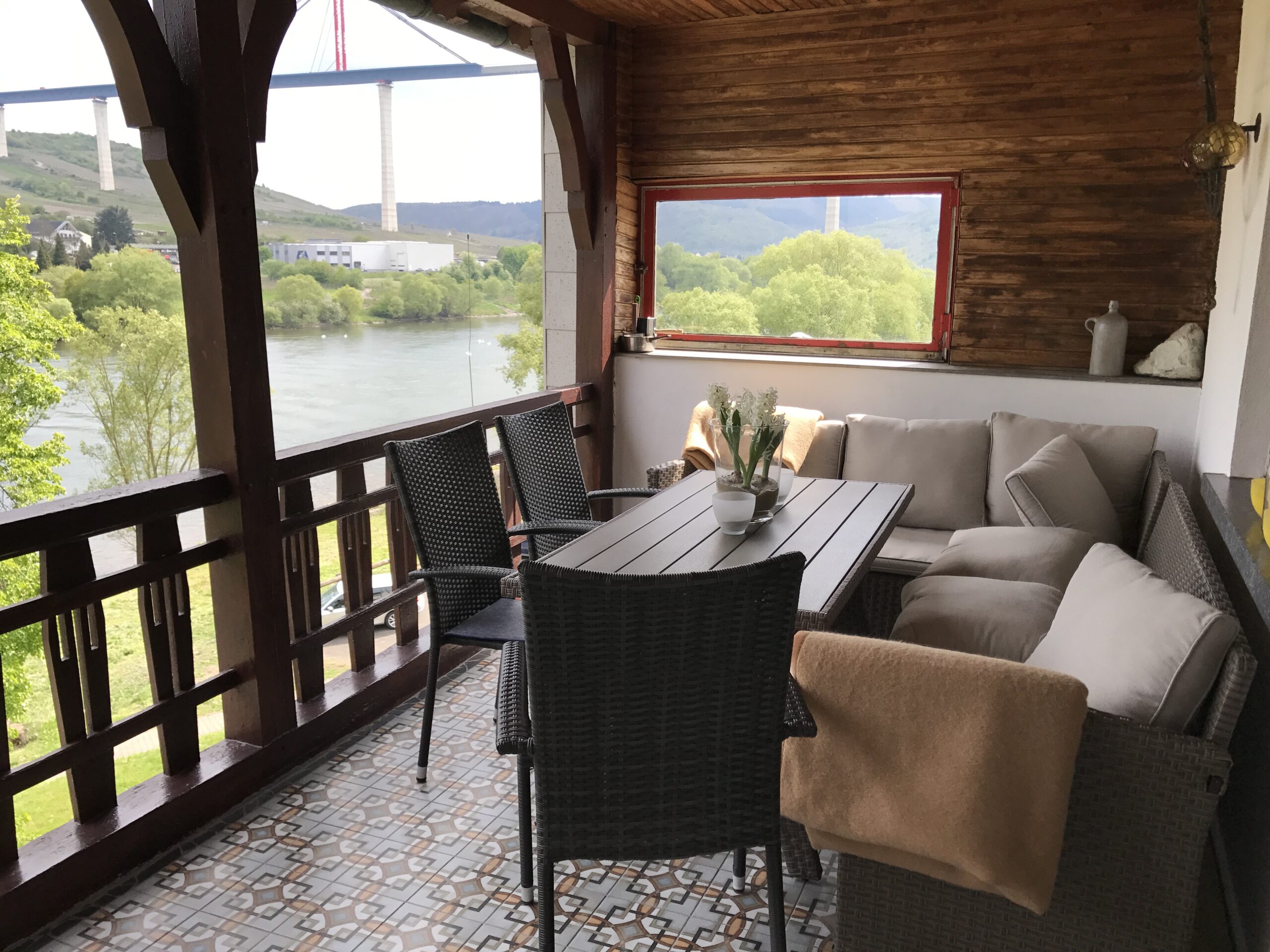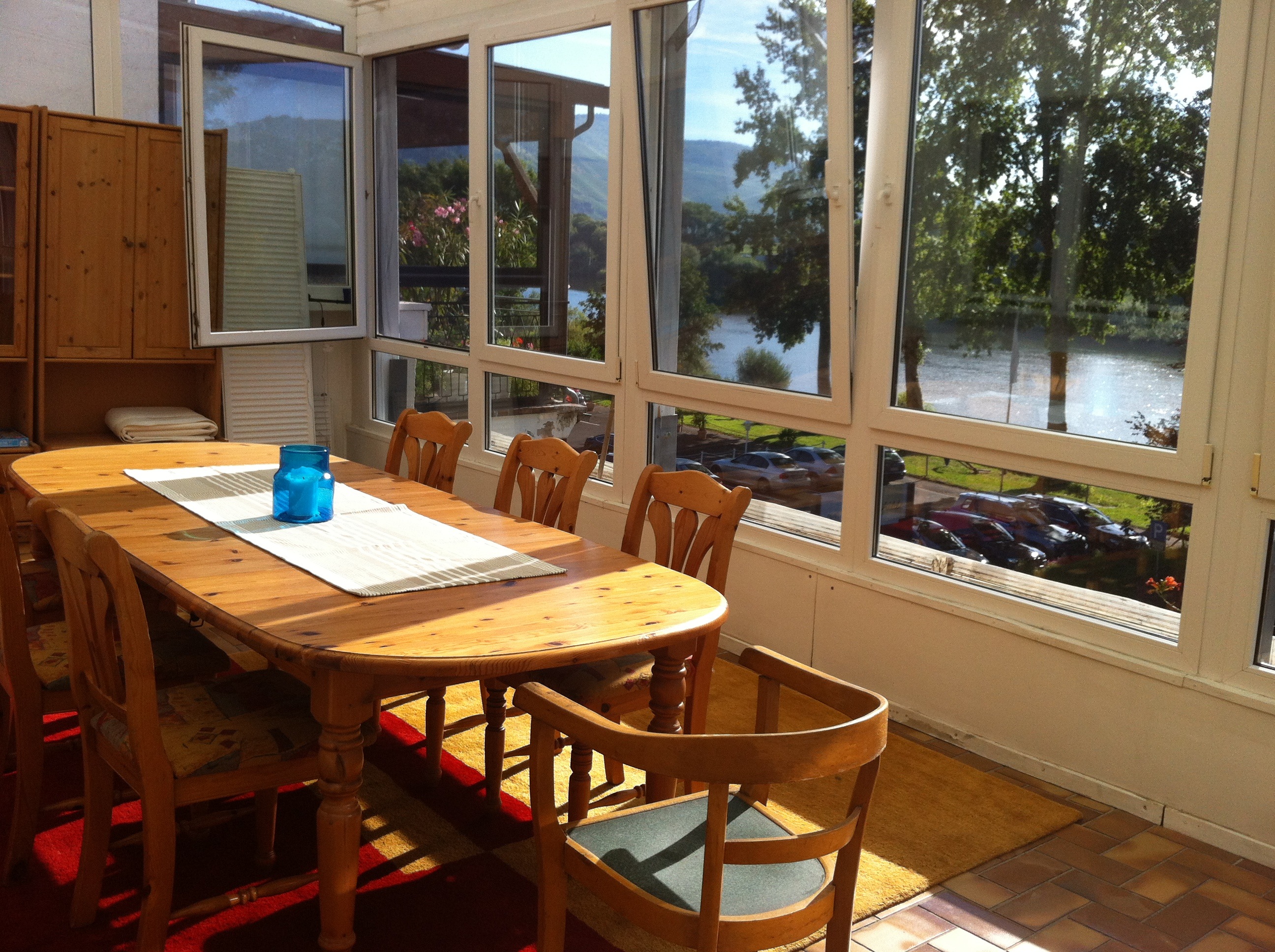 Wir haben uns vom ersten Augenblick wohlgefühlt in diesem tollen Haus an der Mosel. Der Wintergarten ist mit seinem großen Tisch der perfekte Aufenthaltsort für bis zu 10 Leute. Manche Ferienwohnungen sind trotz vieler Schlafmöglichkeiten ungemütlich, aber hier hat jeder sein eigenes kleines Reich.